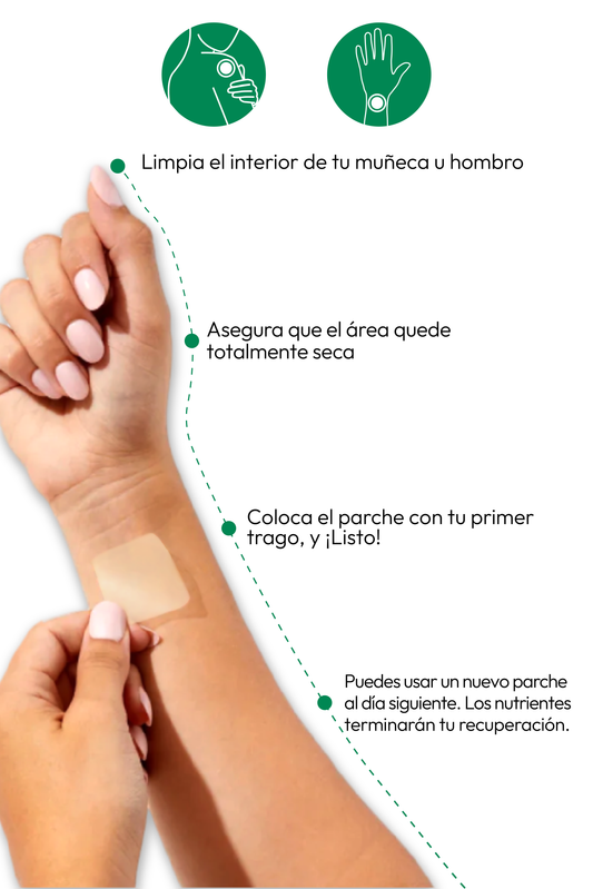 Este innovador parche está diseñado para aliviar los síntomas de la resaca de manera rápida y efectiva. Funciona liberando ingredientes activos de forma constante durante varias horas para ofrecer un alivio prolongado.